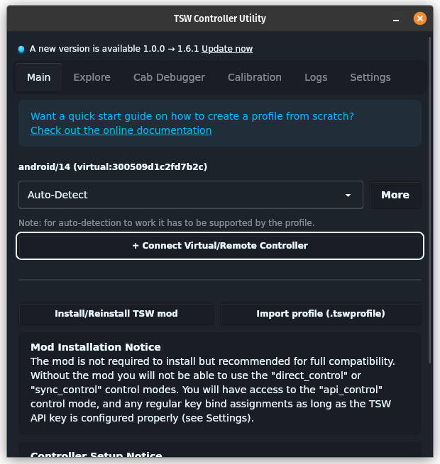 First and foremost you will need the TSW Virtual Controller application for android which can be downloaded from the releases page. At this time only android is supported. Once launched you will see a screen similar to the below example: